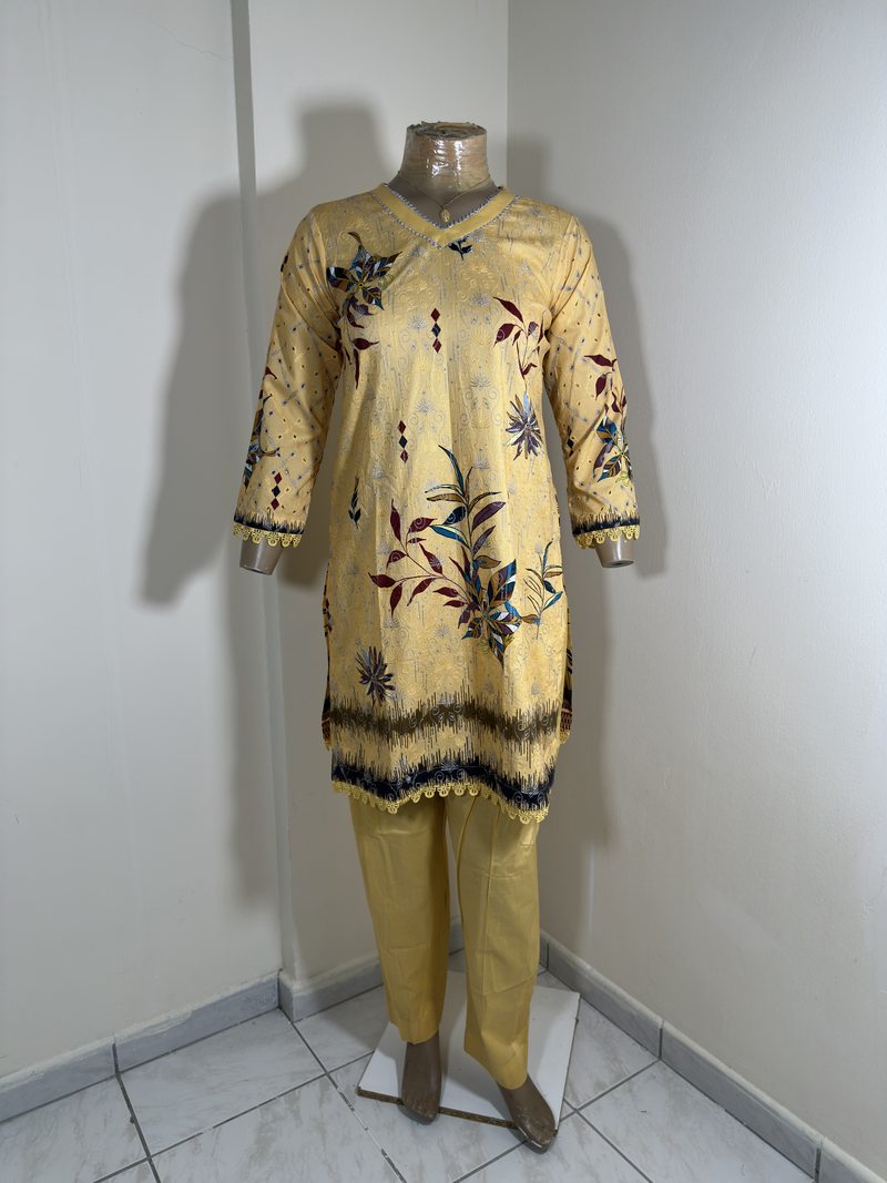 2-Piece Stitched Suit – Light Peach Embroidered – Shirt & Trousers