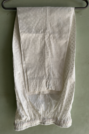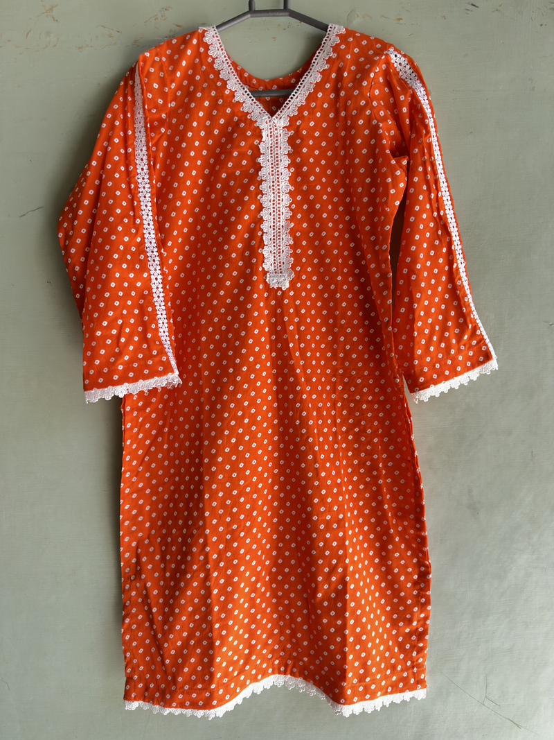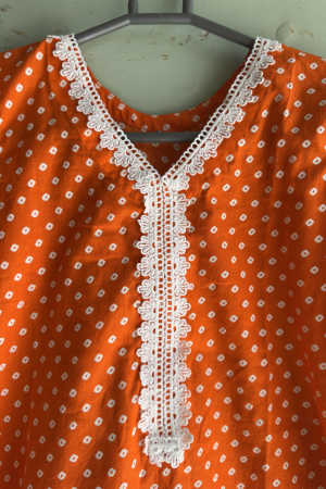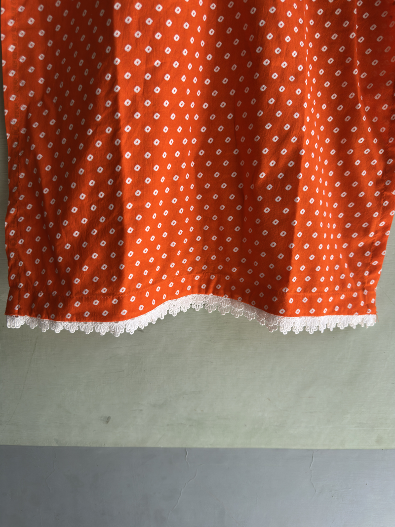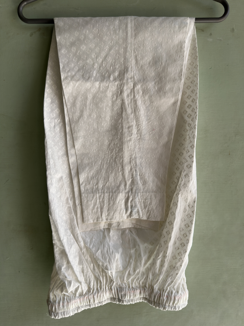 2-Piece Stitched Suit – Orange & White Dots Shirt & White Trousers