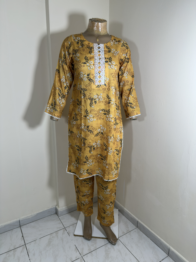 2-Piece Stitched Suit – Yellow, Mustard Shirt & Trousers