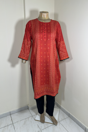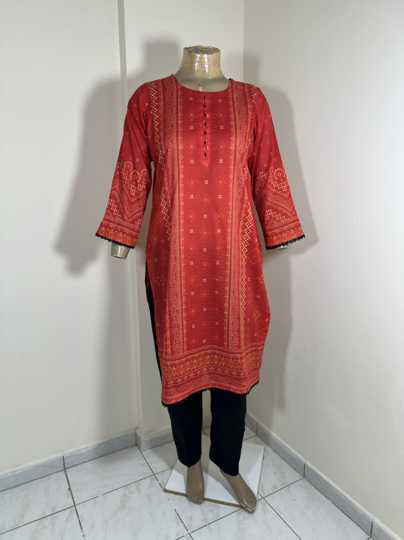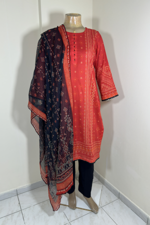 3-Piece Stitched Suit – Red & Black Shirt with Black Trousers & Black Dupata – Chunri Design